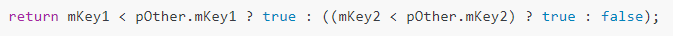 return mKey1 < pOther.mKey1 ? true : ((mKey2 < pOther.mKey2) ? true : false);