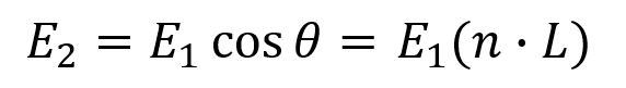두번째, 람베르트 코사인 법칙(표면이 원래의 빛을 얼마나 받는지를 표면 법선과 빛 벡터 사이의 각도)를 근거로 빛의 양을 보정해준다.