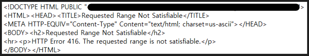 참고로 사용했던 문법 형태는 아래와 같았는데 dataLength가 서버에 링크하여 받을 데이터의 총합 크기와 동일할 때 Error 416을 뱉어냈다.