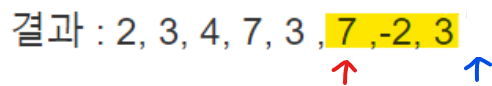 // 결과 : 2, 3, 4, 7, 3 , 7 ,-2, 3