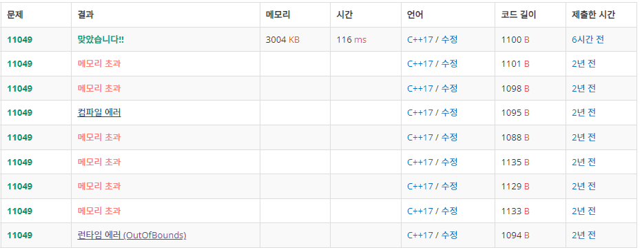 (백준/ C++) 11049 - 행렬 곱셈 순서 / 다이나믹 프로그래밍📃 coding test/◽ 백준, 프로그래머스2024. 7. 18. 12:48