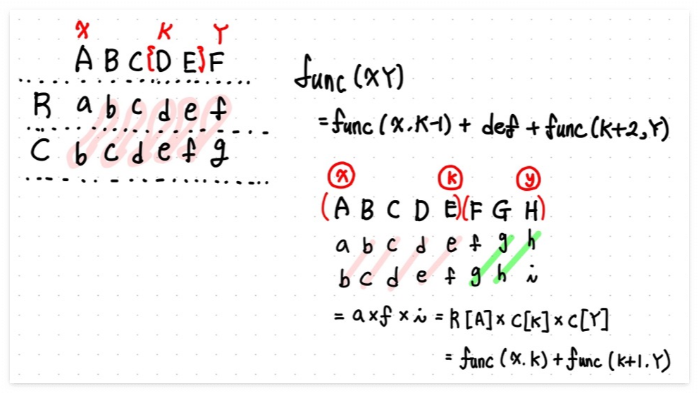 점화식: a x f x i + Func(x , k) + Func (k+1, y)