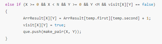 else if (X >= 0 && X < N && Y >= 0 && Y <M && visit[X][Y] == false)
