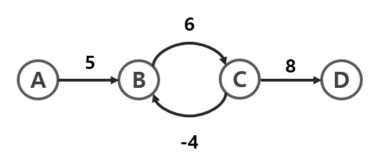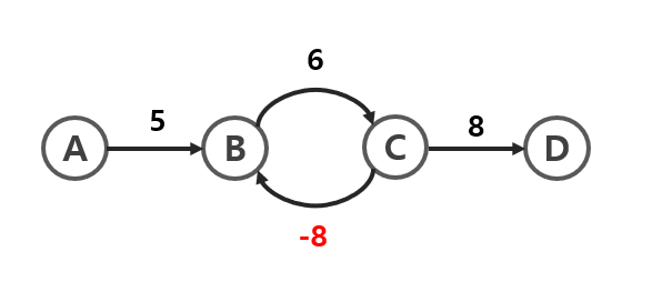시작점에서 도달 가능한 음수 순환이 문제가 될 때(B와 같은 경로) 벨만포드 알고리즘으로 피해줘야한다.