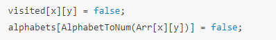 alphabets[AlphabetToNum(Arr[x][y])] = false;