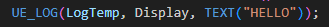 UE_LOG(LogTemp, Display, Text("Your message"));