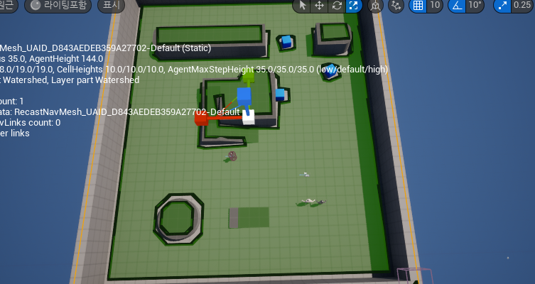 네비메시 바운드 볼륨 늘리고 + P를 AI가 돌아다닐 수 있는 공간을 볼 수 있다.