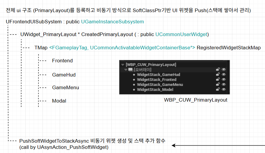 - UI 최상위 레이아웃 역할을 하는 기본 사용자 위젯 클래스(UCommonUserWidget 파생)