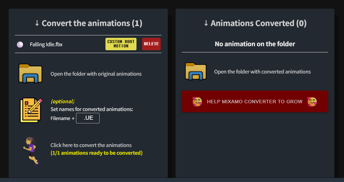 <p>Animations generated by Adobe's Mixamo.com are not fully compatible with Unreal Engine 4 and 5, most notably when it comes to IK or root motion extraction. Mixamo Converter software is a mini-app that processes FBX files downloaded from Mixamo and adapt