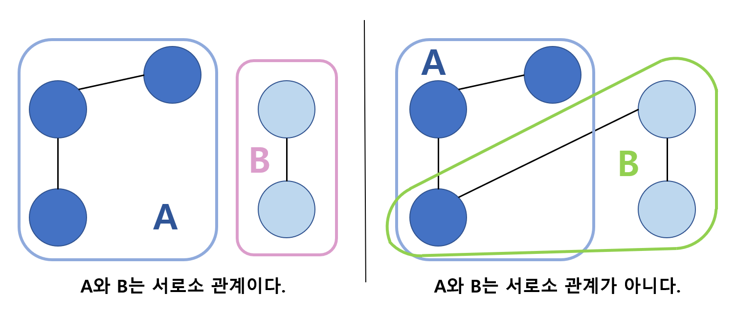 서로소 집합이란 공통 원소가 없는 두 집합을 의미한다.