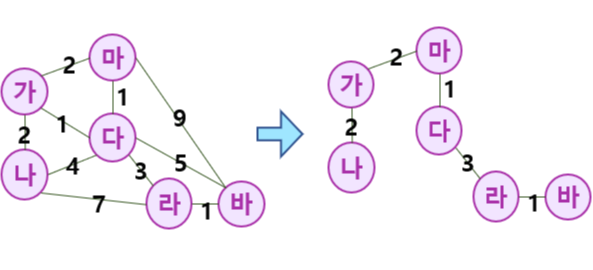 5. 대표적인 알고리즘은 프림, 크루스칼 알고리즘이 있다.