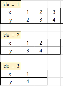 이제 그 안에 있는 코드에 idx = 1인 상황부터 3인 상황까지 대입하게 되면
