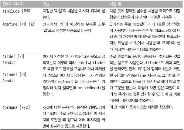 C++로 작성된 소스 코드를 프로그램으로 만드는 빌드(build)작업은 세 단계를 거치며, 전처리 지시자(directive)는 전처리기에 전달할 사항을 표현하며, '#' 문자로 시작한다.