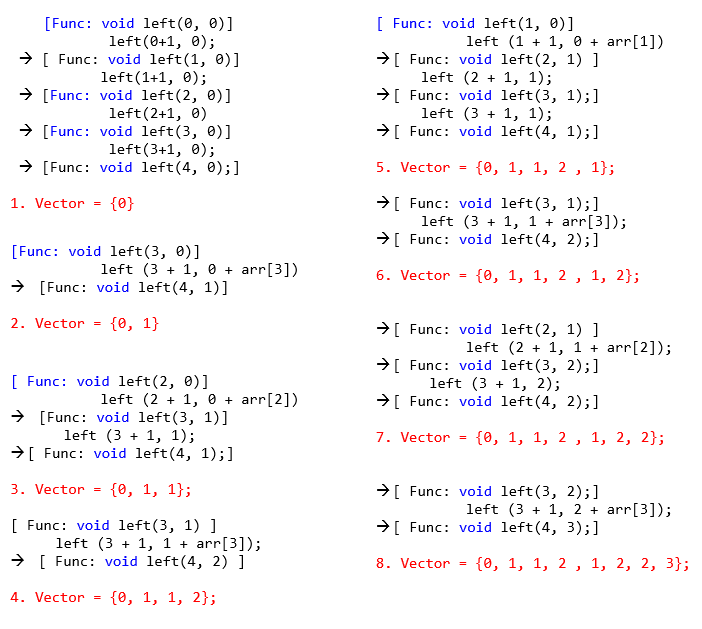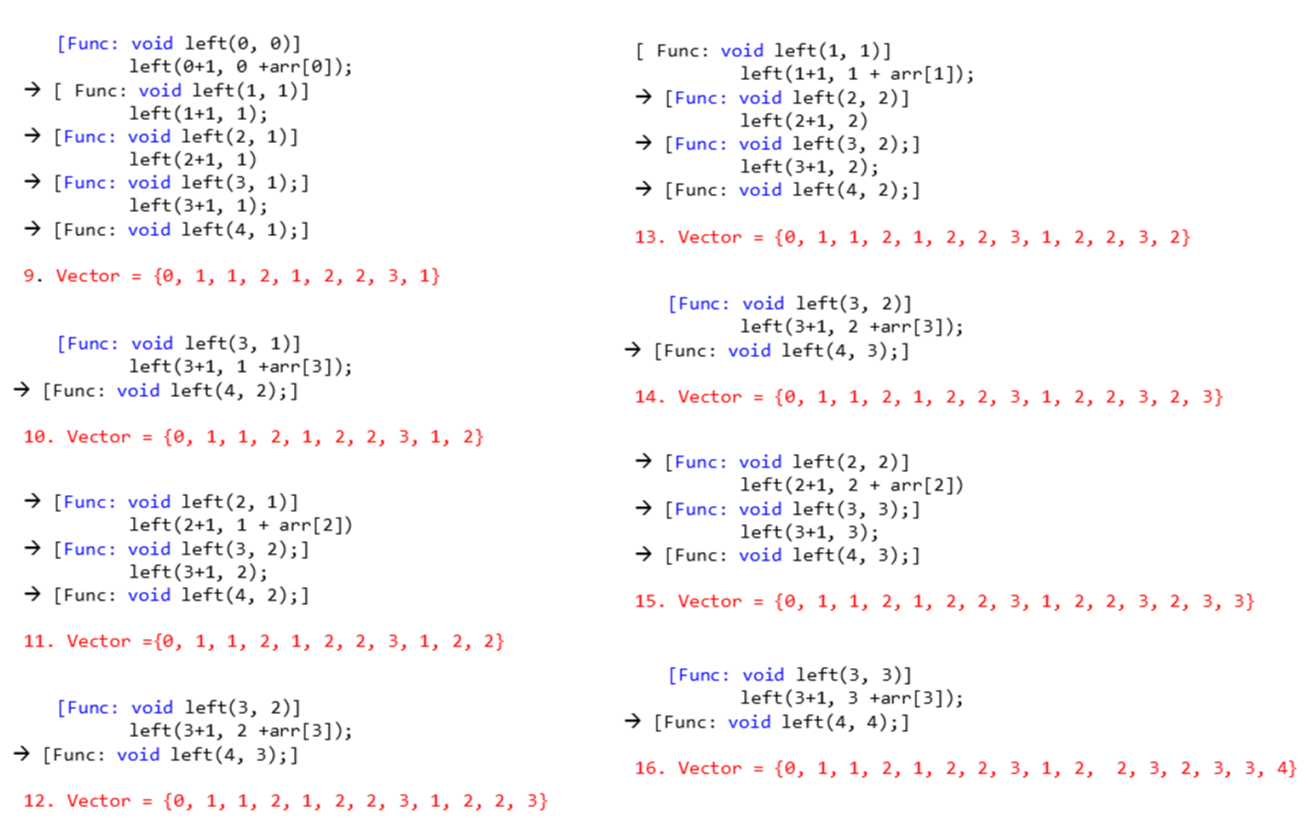 어떻게 흘러가는지 그림을 그리지 않으면 이해하기 어려워서 노가다로 코드 그림을 그려보았습니다. 저에게만 이해갈지는 모르겠지만 .. 이 그림은 N이 8일때를 기준으로 한 그림이고 0, 1, 2, 3, 4 까지의 합을 구하는 코드의 흐름 중 일부입니다.
